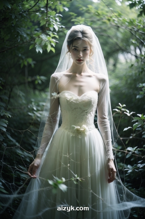1girl,wedding dress,<lora:丝网婚纱:0.8>,deep forest,<lora:花田错:0.5>,