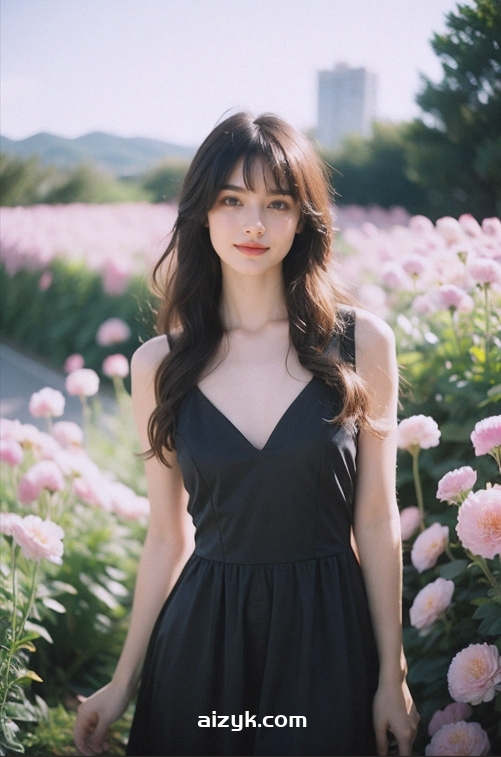 1girl,smirk,hair with bangs,black long dress,<lora:rinko_20231004041754-000008:0.7>,flower,