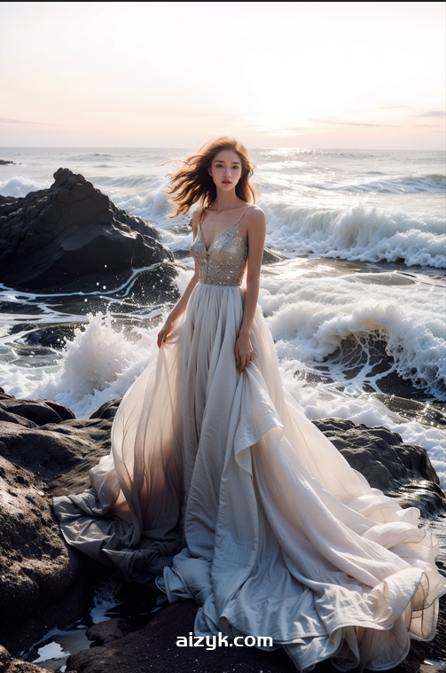 1girl,<lora:天涯海角:0.8>,sea,wave,rock,on the cliff,dirty dress